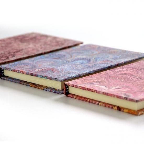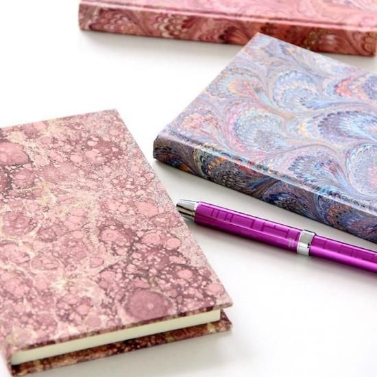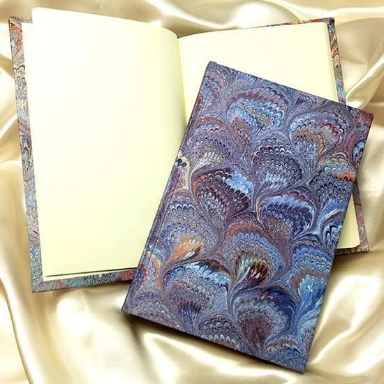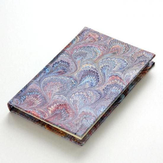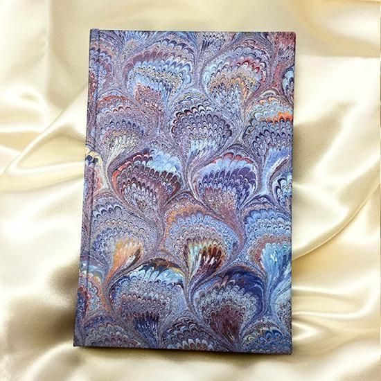 これはフィレンツェの伝統工芸品・マーブル紙で装丁されたノートです。フィレンツェの工房で、一枚一枚、丹念に手作りされたものです。